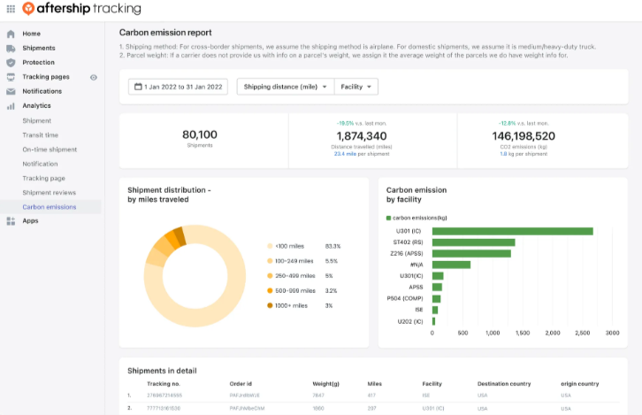 Many companies use carbon footprint accounting software like AfterShip Green to create carbon emissions reports that provide accurate calculations, uncover contributing factors, and improve brand perception.