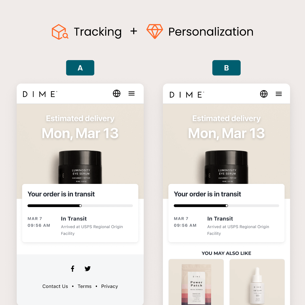 In 2023, for instance, the DIME team tackled the challenges of increased customer acquisition costs by enhancing their checkout flow with recommendations using AfterShip Personalization. This serves customers by providing them with a curated shopping experience, and it helps DIME directly by encouraging the purchase of additional items. As a result of this implementation, they've seen significant improvements in the cart, checkout, and post-purchase one-click upsell (OCU), including a 45% increase in average order value (AOV) overall.