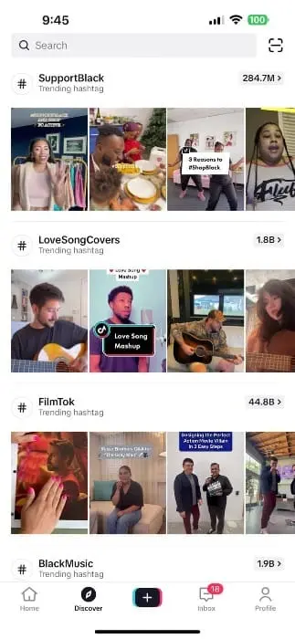 TikTok’s Discover page can reveal evolving trends, potential best-selling products, popular content, and trending hashtags.