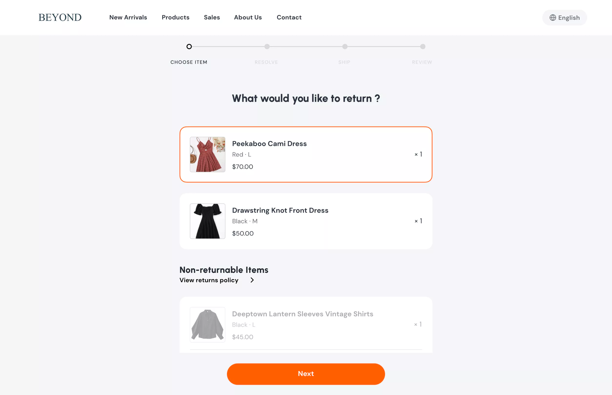 In some cases, stores may need to block a return. In these scenarios, link your returns policy to explain what happened and offer alternative solutions. Customers wonât need to jump between the return policy and the return page while reducing the need to contact customer service.