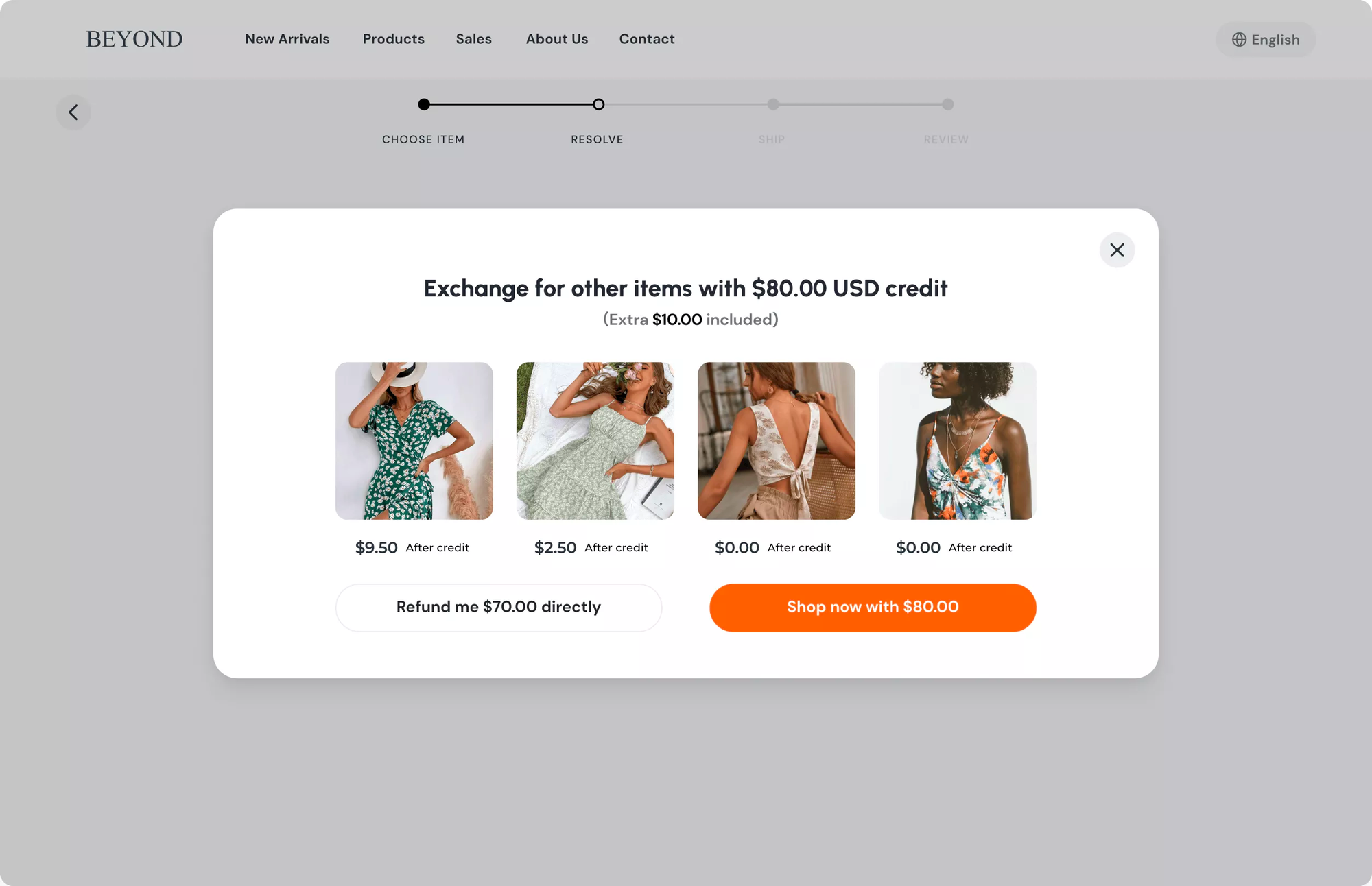 Refunds are costly and might deter customers from returning in the future. One way to encourage customers to repurchase is by offering exchange or store credit options. Itâs a great opportunity to re-engage customers with something they might prefer and helps recapture revenue for your business. Plus, product recommendations based on the returned items may add a touch of personalization and help customers discover other items.