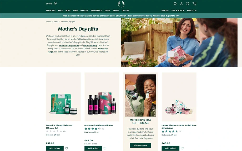 An idea you can steal: Offer gift bundles that cater to different interests and age groups, such as self-care kits for new moms or cooking tools for seasoned mothers. Collaborate with influencers to showcase your products and offer exclusive discounts to their followers.