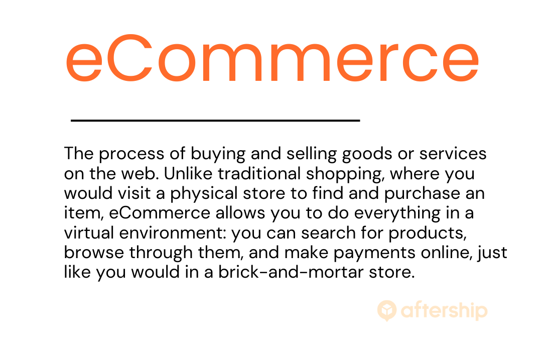 eCommerce (or electronic commerce) is the process of buying and selling goods or services on the web. Unlike traditional shopping, where you would visit a physical store to find and purchase an item, eCommerce allows you to do everything in a virtual environment. You can search for products, browse through them, and make payments online, just like you would in a brick-and-mortar store.